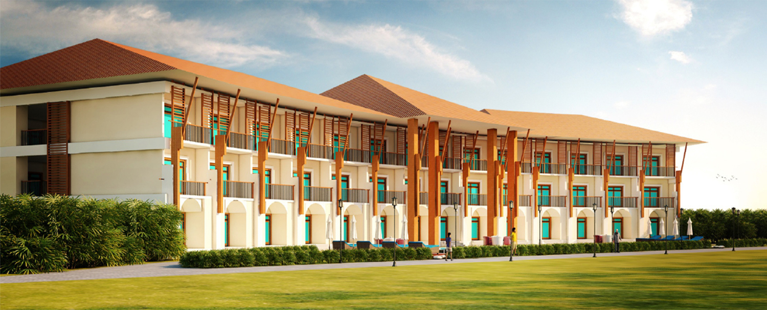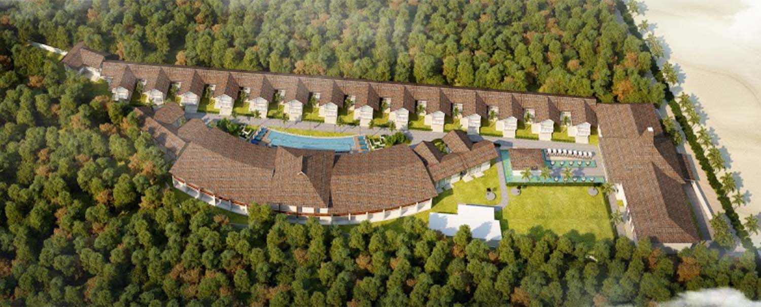 The beach front bohemian resort is designed to optimise views looking out to the ocean. The resort features villas, pool-front rooms and sea view rooms. The central oasis has the signature platform pool with tropical lily pools and planting. The reception building houses the F&B along with banqueting space that opens out to the lawns at the rear.